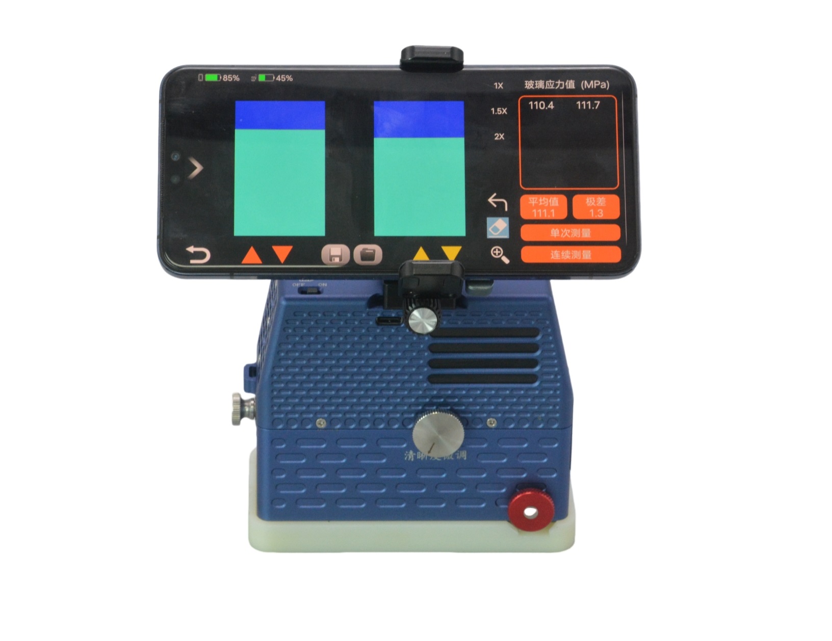 輕巧實用:儀器僅重 640g,體積小巧,將儀器置于浮法玻璃的浸錫面的表面上,調節(jié)圖像,即可測量。
